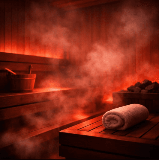 The warmth builds slowly inside a Scandinavian-inspired sauna, inviting the body to soften and the mind to turn inward.